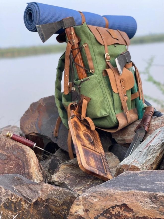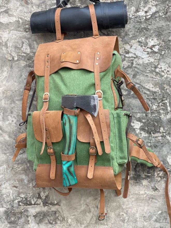 50 Liter Camping Backpack Handmade Leather