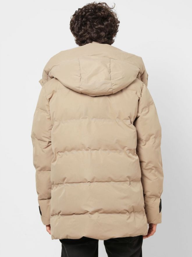 BEIGE HOODED LONG PUFFER JACKET