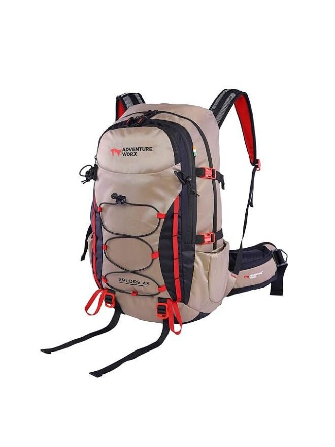• SPACIOUS BACKPACK: The Adventure Worx Xplore backpack has a front zipped pocket for storing essentials for quick access and a grab handle for easy carrying. Load adjusters are at the top, shoulder bone, and side, with a compression strap at the bottom to carry a sleeping mat. Two large pockets are on both sides of the pack to keep your water bottles, and there are ice-axe/walking pole holders.