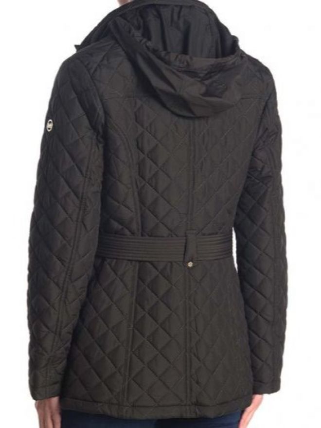 Moss Belted Diamond Quilted Hooded Jacket